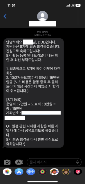 인스타 DM으로 문의해보니 불합격 여부도 통지해주신다고 하셨다! 그래서 뭔가 이상하다 하면서 다음날이 되었는데...